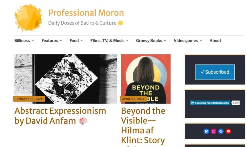 In my spare time I'm a prolific blogger. Across my sites Professional Moron (satire & culture) and Moonshake Books (literary reviews) I've amassed over 4,000 posts. The former is my main focus and updates daily. In 2023 I achieved over 130,00 unique visitors. I also write novels and short stories.
